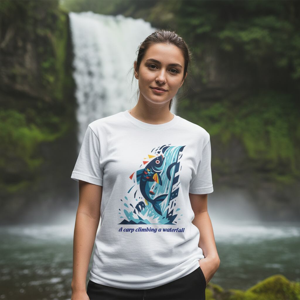 鯉の滝登り Tシャツ|ことわざ シンプルTシャツ