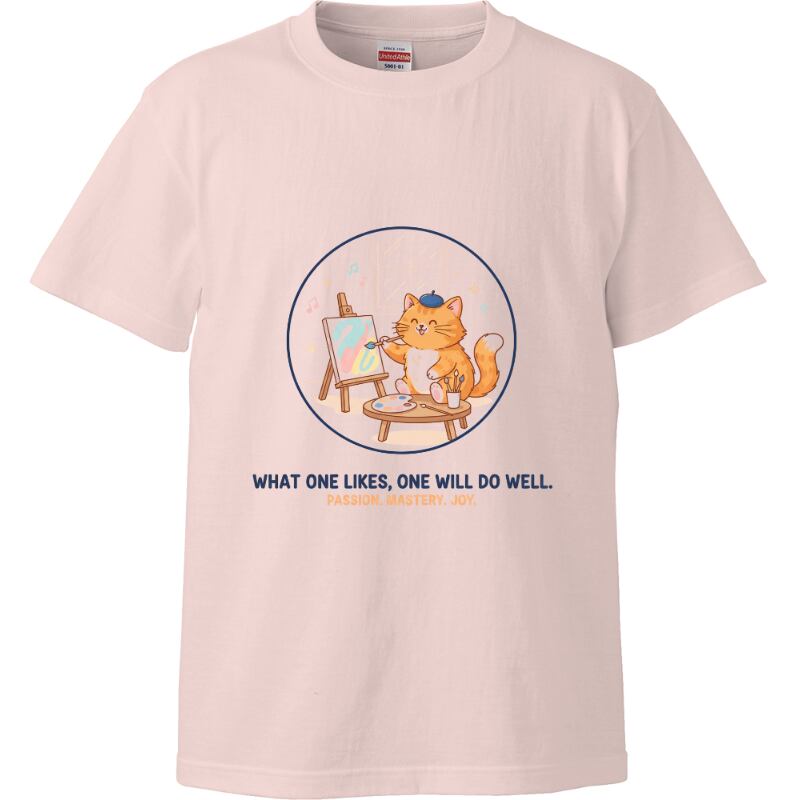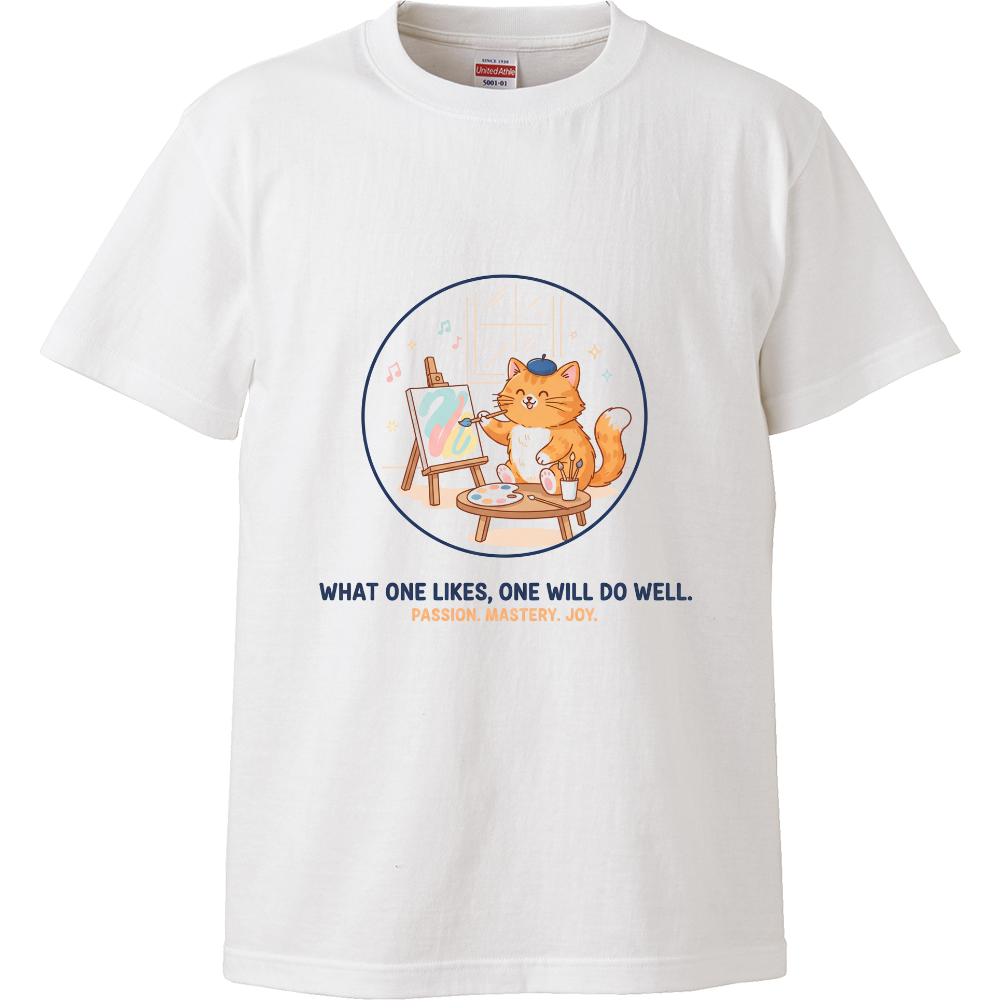 「好きこそものの上手なれ(What one likes, one will do well.)」をかわいらしく猫ちゃんでデザインしました。「好きこそものの上手なれ」は"好きなことは熱心に取り組むので、自然と上手になる"という意味です。こういう何かを人生で見つけたいものですね。