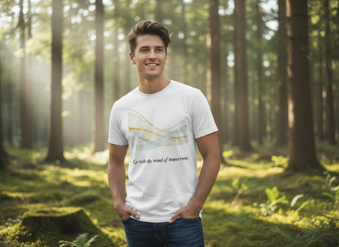 「明日は明日の風が吹く(Go with the wind of tomorrow.)」をデザインしました。「明日は明日の風が吹く」は"先のことを心配してもしかたないので、成り行きにまかせよ"ということを意味することわざです。人生においてこういうタイミングがあってもいいですよね。