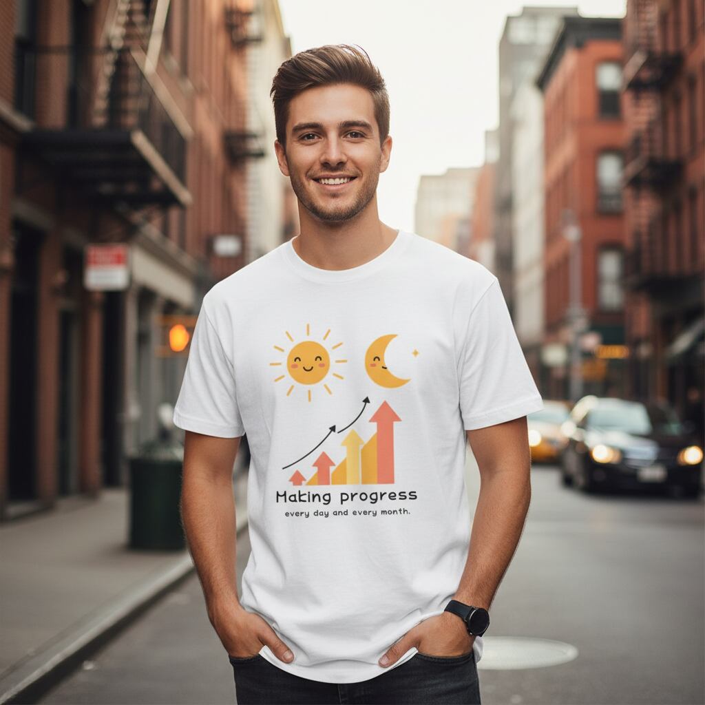 日進月歩 Tシャツ|ことわざ シンプルTシャツ