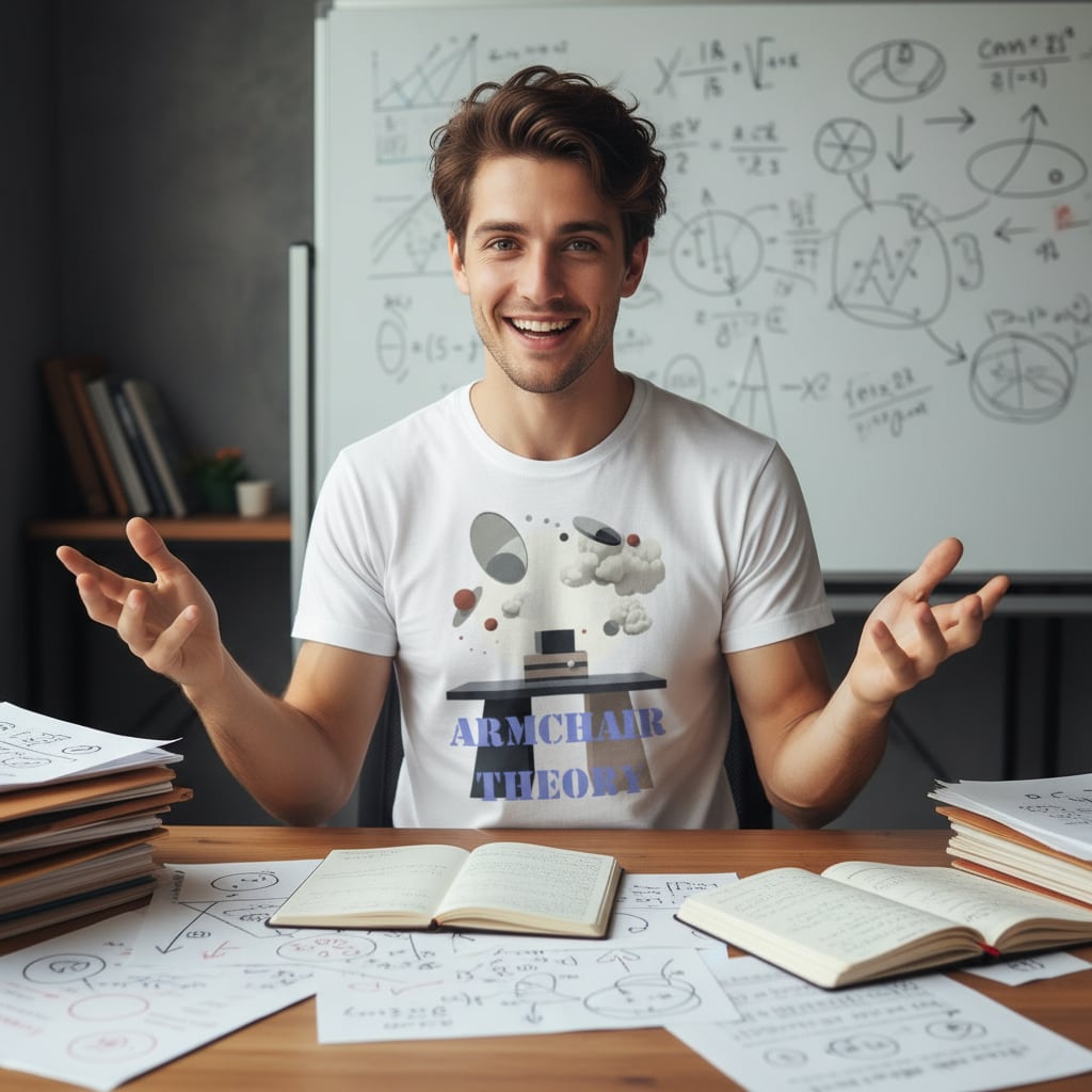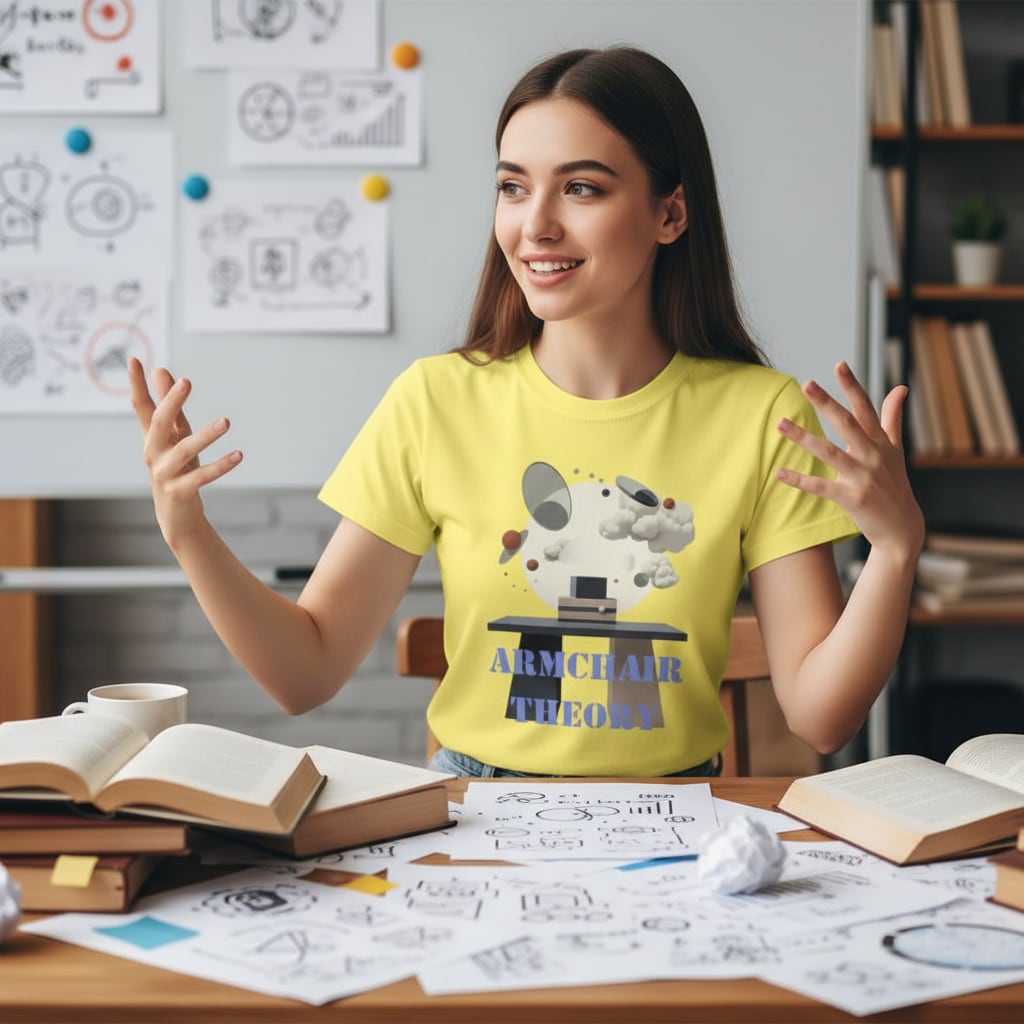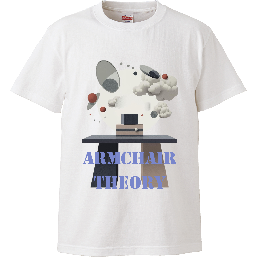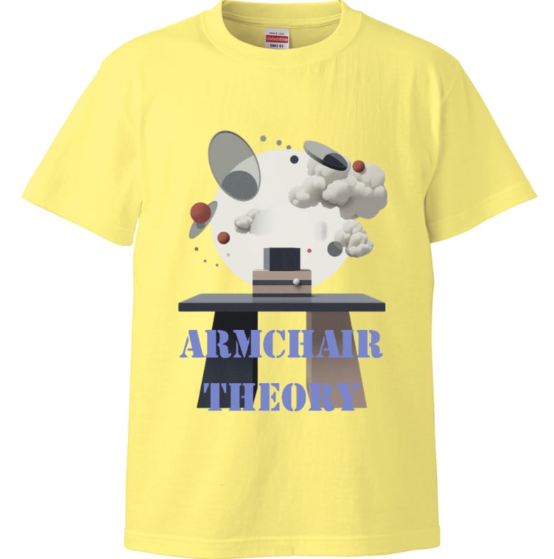 「机上の空論(Armchair Theory)」をデザインしました。「机上の空論」は"頭の中だけで考えた現実的ではない計画や理論"を意味することわざです。自分の行動は机上の空論にならないよう、着実に考えて進めたいものですね。